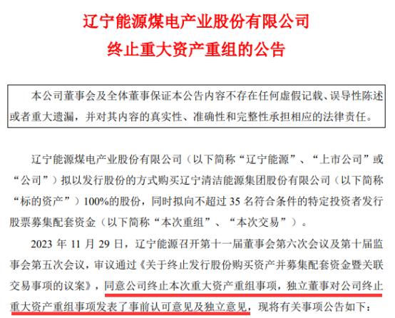 11月29日晚,辽宁能源发布公告,决定终止本次重组事项,并申请撤回本次重组相关申请文件。