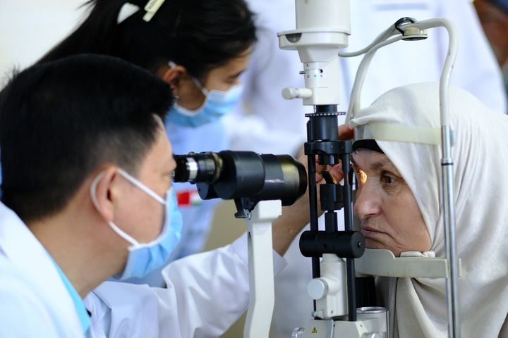 2024年6月12日,在塔吉克斯坦首都杜尚别,中方医生在“健康快车塔吉克斯坦光明行”活动期间为患者进行检查。 新华社记者 郑开君 摄