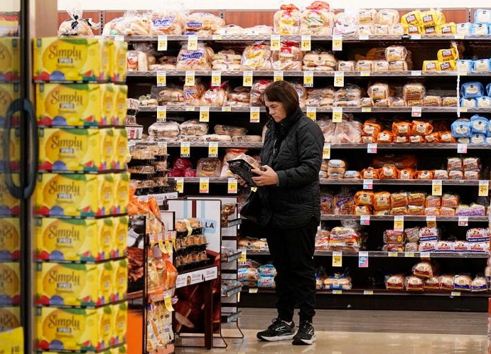 2月13日,顾客在美国加利福尼亚州米尔布雷的一家超市购物。新华社发(李建国摄)