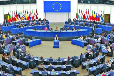 11月27日,在法国斯特拉斯堡,冯德莱恩(中)在欧洲议会会议上讲话。新华社发