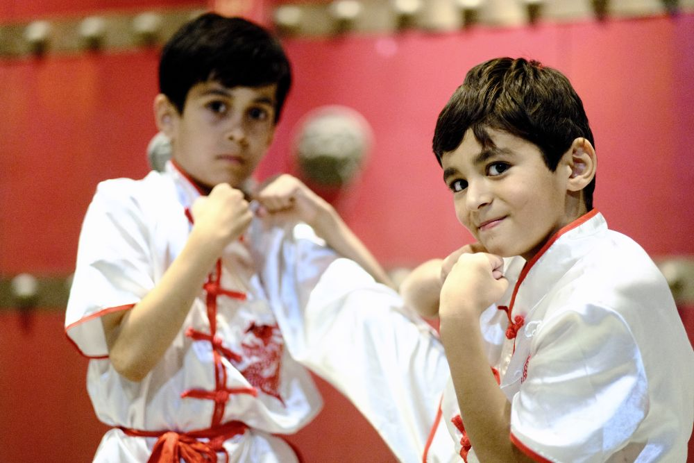 2024年6月11日,在塔吉克斯坦首都杜尚别,爱好中国武术的当地儿童参加塔吉克斯坦民族大学孔子学院的武术表演排练。新华社记者 郑开君 摄